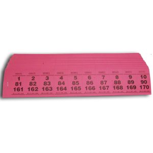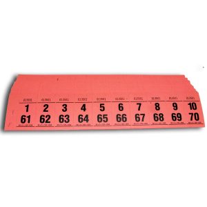 120x1x120 Paddle tickets comes 1 number per ticket, 120 tickets per set. Each set has its own serial number printed on each ticket. 100 sets per bundle.